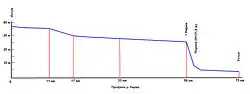 Profil toku Narvy (výrazné klesání na úseku peřejí u města Narvy)