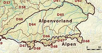 - Südliches Alpenvorland (D66/03, Jižní alpské podhůří, též Voralpines Hügel- und Moorland)