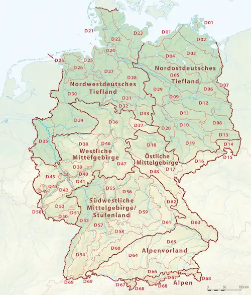 - Naturräumliche Gliederungsübersicht Deutschlands mit Haupteinheiten (starý a nový systém)