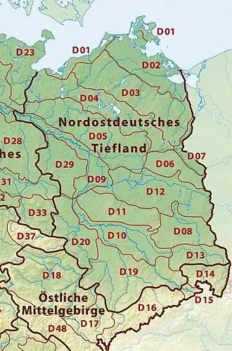 - Nordostmecklenburgisches Flachland mit Oderhaffgebiet (D02/72-73, Severovýchodomeklenburská rovina s Oderským zálivem)