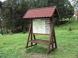 - Začátek stezky je podle cedulí u základní školy. Po 300 metrech je možné volit dvě trasy.
