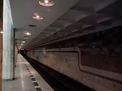 Stanice je trojlodní, obklad pilířů je z bílého mramoru a obklad kolejové zdi je z hnědého marmoru. Je to druhá dvoupatrová stanice, po stanici Universytet, do druhého patra přistup není umožněn, sídlí zde kanceláře metra.