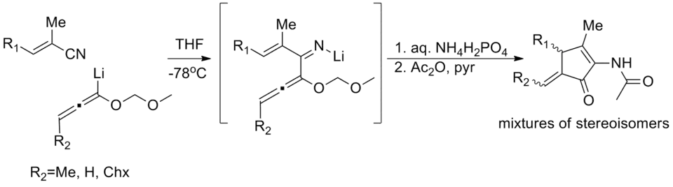 - ↑ Tius, M. A.; CHU, C. C.; NIEVES-COLBERG, R. An imino Nazarov cyclization. Tetrahedron Letters. 2001, s. 2419–2422. doi:10.1016/s0040-4039(01)00201-5.