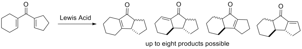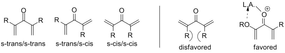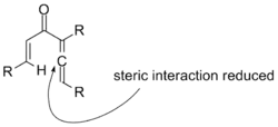 Obdobným způsobem byly zkoumány allenylvinylketony a zjistilo se, že u nich v důsledku odstranění β-vodíků dochází k výraznému urychlení reakce, jelikož má s-cis konformer velké kruhové napětí.[6]