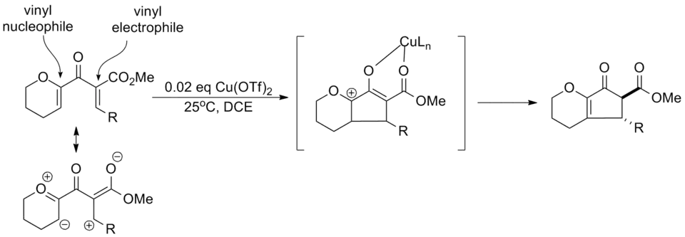 - ↑ Grant, T .N.; RIEDER, C. J.; WEST, F. G. Interrupting the Nazarov reaction: domino and cascade processes utilizing cyclopentenyl cations. Chemical Communications. 2009, s. 5676–5688. doi:10.1039/B908515G. PMID 19774236.