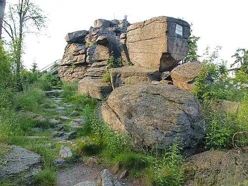 Vrchol hory Nebelstein s přírodní rozhlednou na rakouské straně Novohradských hor | |