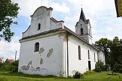 ![]() Pohled na Nebužely s evangelickým kostelem | |