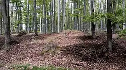 - Zaniklé vsi vytvářející soubor převýšených i zahloubených útvarů (pozůstatků usedlostí), často doplněných relikty drobných opevněných sídel (tvrzí), zaniklých rybníků, mlýnů, polností (plužin) nebo cest.[46]