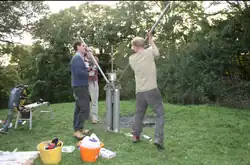 - Informace o hloubce podloží a rozsahu nadložních vrstev lze získat i pomocí geologických vrtů, které bývají prováděny mechanizovanou vrtnou soupravou a dosahují větších hloubek.[59]