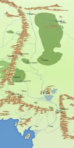 Výřez z mapy Středozemě zachycující tok Anduiny