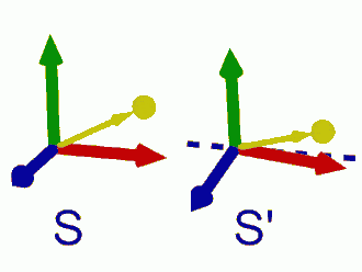 Uvažujme inerciální soustavu a neinerciální soustavu, která se vůči inerciální pohybuje obecným translačním pohybem . Transformační vztah mezi souřadnicemi je dán ve tvaru