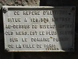 - na Montmartru uvnitř hřbitova Calvaire u zdi kostela Saint-Pierre de Montmartre (128,65 m) a poblíž kostela (130,53 m)