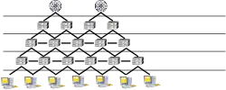NTP používá hierarchický systém „strata hodin“, kde systémy se stratem 1 jsou synchronizovány s přesnými externími hodinami jako třeba GPS nebo jiné hodiny řízené rádiovým signálem (v Česku obvykle DCF77). NTP systémy strata 2 odvozují svůj čas od jednoho nebo více systémů se stratem 1 atd. To zabraňuje vzniku cyklu v grafu synchronizujících se strojů. Stratum systému leží v rozsahu 1 až 14; stratum 0 mají samotné referenční hodiny připojené k nejpřesnějšímu serveru; stratum 15 má počítač, který se v důsledku výpadku sítě nemůže synchronizovat s zdrojem času, nebo se synchronizuje po výpadku spojení. (Je dobré si všimnout, že stratum hodin v telekomunikačních systémech je odlišný pojem.)