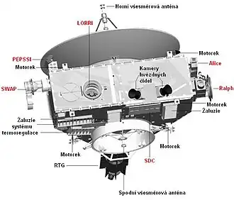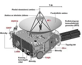 | Nese přístroje | Ralph, Alice, REX, Long Range Reconnaissance Imager, Solar Wind Around Pluto, Pluto Energetic Particle Spectrometer Science Investigation a Venetia Burney Student Dust Counter | |||||
