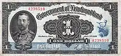 Bankovka newfoundlandského dolaru vydaná v r. 1920