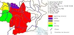| 4 | okres Mao | མའོ་རྫོང་། / མའོ་ཝུན་ / རྟ་མང་རྫོང་། |