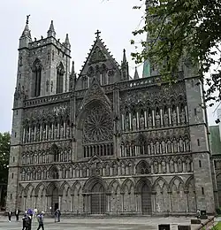 Architekt Christian Christie, pod jehož vedením renovace probíhala, povolal roku 1897 do Trondheimu sochaře Gustava Vigelanda. Ten ale nebyl zakázkou právě nadšen. „Vydělávám velmi mnoho peněz, ale prodávám svou duši“, napsal tehdy jednomu ze svých přátel. Celý dóm mu připadal až příliš „protestantský“. Přesto však trvalo deset let, než se s touto zakázkou vypořádal. Později byla vyhlášena soutěž, v níž roku 1928 zvítězil teprve třicetiletý Helge Thiis: ten se pak ujal i uměleckého vedení stavby. Průčelí ještě nebylo úplně hotovo, když byl dóm roku 1930 na svátek svatého Olafa nově vysvěcen. Přesto mohly při této příležitosti poprvé zaznít varhany, které byly postaveny v Německu.