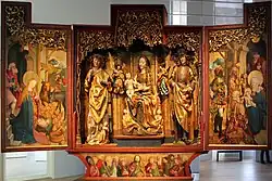 - 1513 Rothův oltář, farní kostel Sauldorf, pak kaple Rothů v Meßkirch, od roku 1909 Reiss-Engelhorn-Museen Mannheim