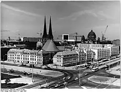 ![]() Nábřeží řeky Sprévy s obnovenými domy i dostavěnými domy panelovými | |