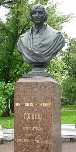 Nikolaj Vasiljevič Gogol (rusky Николай Васильевич Гоголь, ukrajinsky Мико́ла Васи́льович Го́голь) 20. březnajul./ 1. dubna 1809greg., Soročynce, dnes Velyki Soročynci – 21. únorajul./ 4. března 1852greg., Moskva) byl ruský prozaik a dramatik ukrajinského původu.[1][2][3][4][5][6][7][8] Byl představitelem ruského romantismu s velmi silnými prvky kritického realismu, za jehož zakladatele je v ruské literatuře považován. Uvedl do literatury nové sociální vrstvy prostých lidí: obyčejného mužika a malého úředníka. Jeho nejznámějšími díly jsou dramata Revizor a Ženitba, román Mrtvé duše a povídky Taras Bulba, Plášť a Nos.