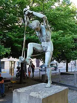 - ↑ a b Socha na Senovážném náměstí v Praze | Drobné památky. www.drobnepamatky.cz [online]. [cit. 2023-12-03]. Dostupné online.