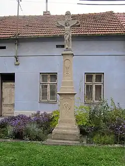 Po kostele druhou nejstarší náboženskou památkou v Nivnici, také zapsanou mezi kulturní památky ČR je kamenný kříž zbudovaný v roce 1786 mlynářem Janem Soukeníkem starším[15] Původně stál v zahradě, u dnes už neexistujícího, mlýna čp. 3. V roce 1856 byl přemístěn k cestě a roku 1922 přestěhován do předzahrádky domu na ulici Podohradí.