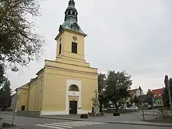 Tento kostel svatých Andělů Strážných, jehož celková délka i s předsíní je 36,5 metru a výška 42 metrů, je dominantou obce a kulturní památkou ČR.[14] V kostele svatých Andělů Strážných byly nejprve dva zvony, přenesené z kostela svatého Michaela. V roce 1774 k nim přibyl zvon umíráček. Až v roce 1894 zakoupila obec čtyři zvony nové, které byly za první světové války rekvírované pro vojenské účely. Nové zvony z roku 1923 byly opět nuceně odevzdané za druhé světové války v roce 1942. Až do roku 1947, kdy byly vysvěceny nové zvony byl na věži pouze umíráček z roku 1774, který je zde doposud.