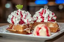 - Stroopwafel nebo vafle, existuje jich mnoho druhů, holandské jsou tvrdé, slepované sirupem. Podávají se nahřívané nad šálkem horkého nápoje nebo i zastudena.