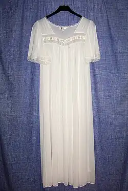 - historizující – široká noční košile z bílého plátna s dekoracemi (krajky, volány), délka dlouhá, rukávy dlouhé, pro muže i ženy.
