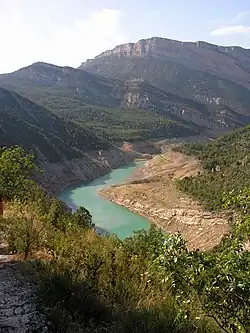 Soutěska prořezaná Noguerou Ribagorçanou v pohoří Montsec -