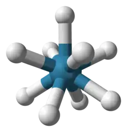 Ion [ReH9]2− je jedním z mála známých komplexů s koordinačním číslem 9; vysoké koordinační číslo umožňuje malá velikost hydridového ligandu a velký kladný náboj centrálního iontu Re7+. Molekula má strukturu trigonálního prizmatu s třemi přidanými vrcholy;[7][8] tato struktura byla zjištěna neutronovou krystalografií.[9][10]