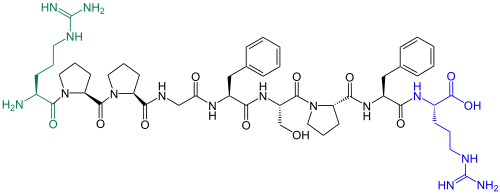 Bradykinin je jedním z tkáňových hormonů a byl objeven v roce 1948 Brazilcem Maurício Rocha e Silva. Má antihypertenzní účinek, zvyšuje prostupnost cév a vede ke kontrakci hladkých svalů střeva, dělohy a průdušek. Uvolňuje se, když tělo reaguje na trauma nebo zranění. Jsou při tom uvolňovány leukocyty, neboť bradykinin se mimo jiné podílí na pocitu bolesti a zánětu.
