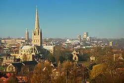 Kapitál z obchodu s vlnou financoval výstavbu mnoha nádherných kostelů a Norwich se mohl pochlubit větším množstvím kostelů než kterékoli město na sever od Alp. V této době mělo město čilé obchodní spojení s mnoha městy v Evropě od Skandinávie až po Španělsko. V té době se Norwich stal samostatným městem a centrem nejhustěji obydleného a prosperujícího hrabství. Ve středověku zasahovala k Norwichi mělká mořská zátoka, která z něj udělala město přístavní.[2] Náboženská reformace proběhla na rozdíl od jiných hrabství poměrně pokojně a město má od té doby dvě katedrály: katolickou a anglikánskou. V roce 1549 vypuklo povstání Roberta Ketta, které bylo potlačeno a vůdce popraven. V roce 1567 zaznamenal Norwich velký příliv valonských imigrantů. Město se stalo v 16. a 17. století domovem uprchlíků z různých zemí, například francouzských hugenotů nebo belgických Valonů. Zdá se, že tito imigranti se začlenili do společnosti města bez velkých problémů a jejich příchod obchodní vztahy s kontinentální Evropou naopak posílil.