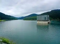 Na dně údolí, které je dnes v hloubce téměř 50 m, se nacházely obce Riečnica a Harvelka a v povodí byly samoty patřící k těmto obcím. Přehrazením toku Bystrice 55 m vysokou hrází se vytvořila zásoba vody v objemu 30 milionů m³, pro zásobování skupinového vodovodu Nová Bystrica - Čadca - Žilina pitnou vodou. Kamenivo pro stabilizační násyp hráze bylo získáváno v lomu v Klubině, zemina na utěsnění byla těžena, na základě geologického průzkumu, na terase řeky Bystrica, nedaleko Staré Bystrice. Na hrázi se nachází stezka, ze které je pěkný výhled na část vodní nádrže a zařízení pro sledování kvality a odběr vody.