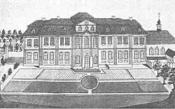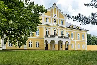V literatuře se uvádí, že v roce 1729 byla postavena nejstarší část nynějšího zámku, kaple svatého Kříže[17] [4][18][19](pravděpodobně se tak ale stalo až r. 1775).[20] Kolem roku 1742 začal hrabě Karel Josef s přestavbou tvrze v dnešní barokní zámek.