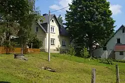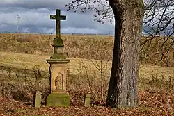 Ve vesnici stával kostel Nanebevzetí Panny Marie z roku 1834 (zbořený v roce 1967[37]) a boží muka pozdně gotického typu z počátku osmnáctého století. Dochoval se pouze kříž na východním okraji vesnice z doby okolo roku 1700. Na jeho hranolovém podstavci jsou reliéfy Panny Marie, svatého Antonína Paduánského a svatého Jana Nepomuckého.[38] Nedaleko od jihozápadního okraje vesnice zůstalo torzo kaple ze druhé poloviny devatenáctého století zvané německy Pfaffkapelle nebo Toberkapelle. Pobořena byla v sedmdesátých letech dvacátého století.[39]