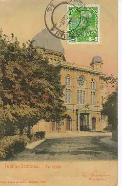 ![]() Teplická synagoga 1882-1939, celkový pohled | |