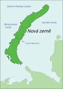 - ↑ a b c Novaya Zemlya. Islands, Russia [online]. Encyclopaedia Britannica [cit. 2018-07-31]. Dostupné online. (anglicky)