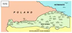 Od roku 1751 se začali do Ruska stěhovat pravoslavní Srbové (včetně Černohorců) a také Rumuni z Valašska a Moldavska, pod vedením Jovana Horvata. Byli to převážně vojáci, kteří měli zkušenosti s obranou Vojenské hranice před Turky. Byla jim přidělena řídce osídlená oblast mezi řekami Inhul a Dněpr, kde na polské hranici docházelo k častým srážkám. V roce 1752 zde byla vytvořena autonomní provincie, spravovaná přímo Senátem. Obyvatelé byli organizováni podobně jako kozáci, tj. na principu domobrany (dělila se na jezdecký a pěší pluk). Srbové zakládali nová sídla, která pojmenovávali podle měst ve staré vlasti: Sombor (dnes Dikivka), Varaždín (dnes Protopopivka), Zemun (dnes Uspenka) atd. Srbská samospráva byla zrušena v roce 1764, kdy byla oblast začleněna do nově vzniklé Novoruské gubernie a muži převeleni do pravidelných husarských pluků.