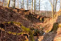 Rozsáhlé vnější opevnění pochází pravděpodobně z první poloviny patnáctého století. Zatímco Tomáš Durdík ho, vzhledem k ponechání neprokopané části příkopu, považoval za nedokončené,[7] podle Milana Sýkory tvoří zemní opevnění spolu s pětibokou baštou promyšlený systém aktivní obrany.[8]