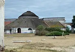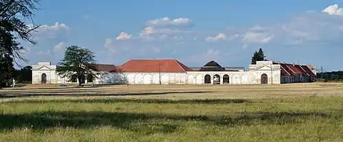 Objekt nechal vybudovat kníže Jan I. Josef z Lichtenštejna v duchu osvícenství jako vzorový hospodářský statek. Stavba původně sloužila pro chov dvaceti krav bernského plemene, poté vzácných merinových ovcí. Monumentální čtyřkřídlý komplex obklopující rozlehlý dvůr navrhl knížecí architekt Josef Hardmuth. V roce 1819 byla architektem Josephem Franzem Engelem doplněn o kruhový salet (tzv. rotundu) se „švýcarskými stájemi“,[1] v níž byla stání pro koně obklopující kruhovou místnost zdobenou iluzivním geometrickým a rostlinných dekorem, prolomenou do stájí i ven velkými francouzskými okny. Knížecí hosté se zde mohli občerstvit a přes skleněnou příčku nahlížet do sousedního chléva.[2]