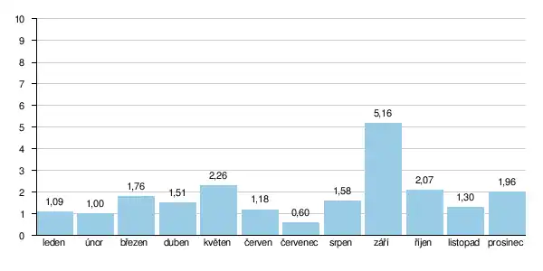 Průměrné dlouhodobé měsíční průtoky Novohradky (m3/s) ve stanici Úhřetice:[14]