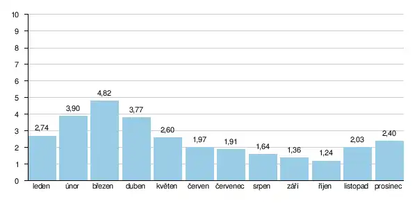Průměrné měsíční průtoky Novohradky (m3/s) ve stanici Úhřetice v roce 2014:[14]