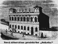 Obrázky, zvuky či videa k tématu Novoměstská sokolovna na Wikimedia Commons - Sokol pražský