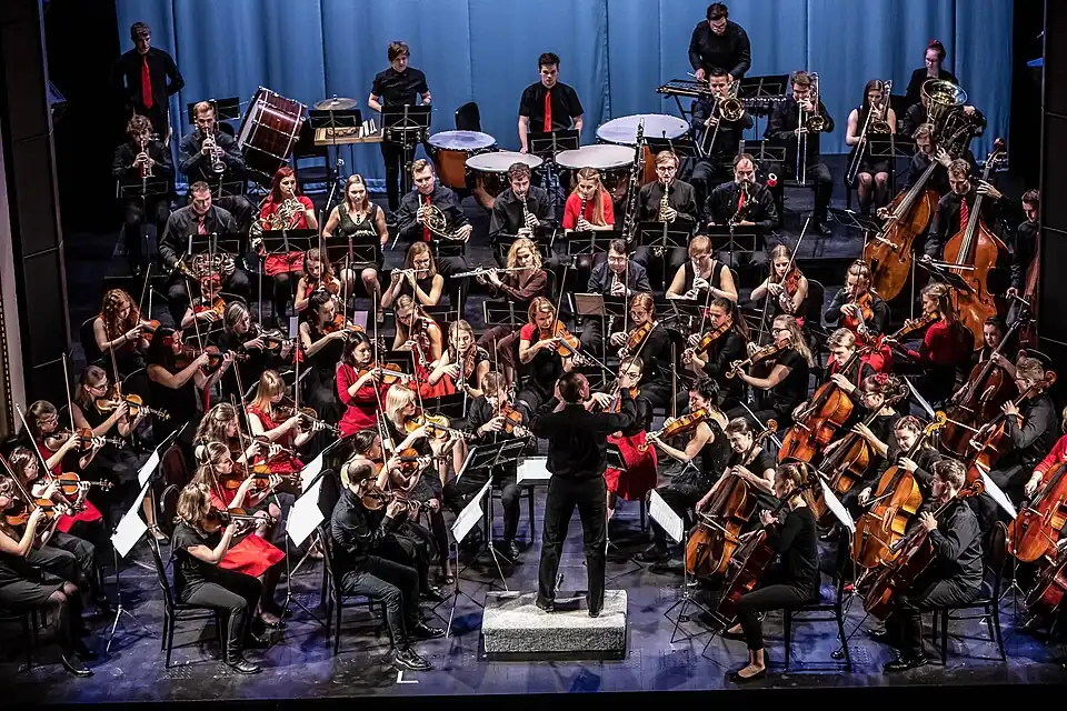 Těleso hraje v obsazení 1. a 2. housle, viola, violoncello, kontrabas, 3 klarinety, basklarinet 2 hoboje, 2 flétny, pikola, fagot, 4 lesní rohy, 2 trubky, 3 pozouny, tuba, tympány a bicí nástroje.