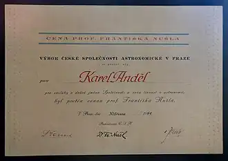 1. Nušlova cena [online]. Česká astronomická společnost, Astronomický ústav AV ČR, Praha 4 [cit. 2010-12-19]. Dostupné online.