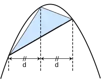 - Plocha parabolické výseče vyseknuté přímkou je 4/3 plochy trojúhelníka vepsaného do této výseče.