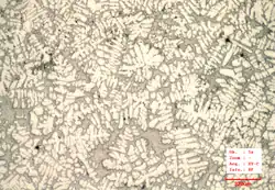 Na obrázku níže lze vidět strukturu u odlitku ze slitiny AlSi7Mg0,3 očkované pomocí 0,05 hm. % Ti.
