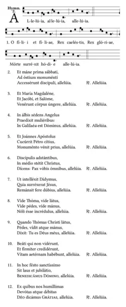 Bývá užíván v rámci katolických bohoslužeb v době velikonoční. Text latinského hymnu se od 15. století postupně vyvíjel do ustálené podoby v 19. století za přispění mnoha autorů, ze které byl poté překládán do různých jazyků.[2]