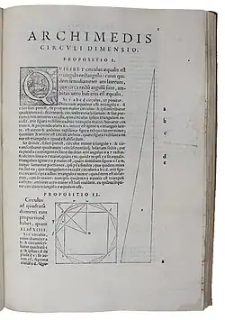Archimédés v něm říká, že plocha kruhu se rovná ploše pravoúhlého trojúhelníka, pro který platí, že délka jedné odvěsny je rovna poloměru kruhu a druhá jeho obvodu.